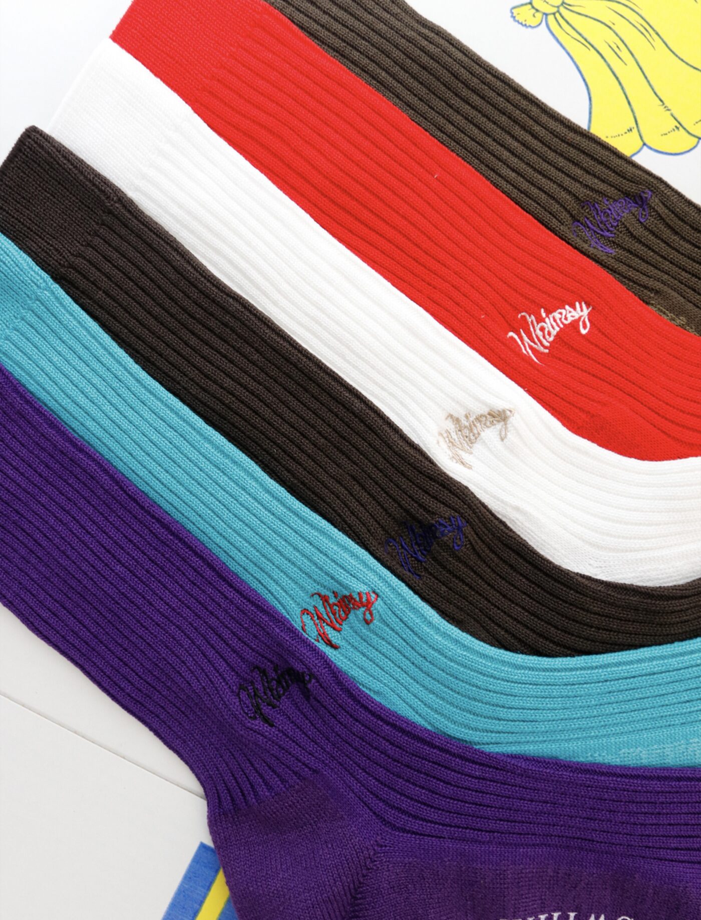 サラリーマンのおじさんや真面目に登校する学生なんかが履いてそうなシンプルなソックスをサンプリングしたソックス。シーズンによりボディカラーやロゴのカラーが変わるWHIMSY定番の1足。