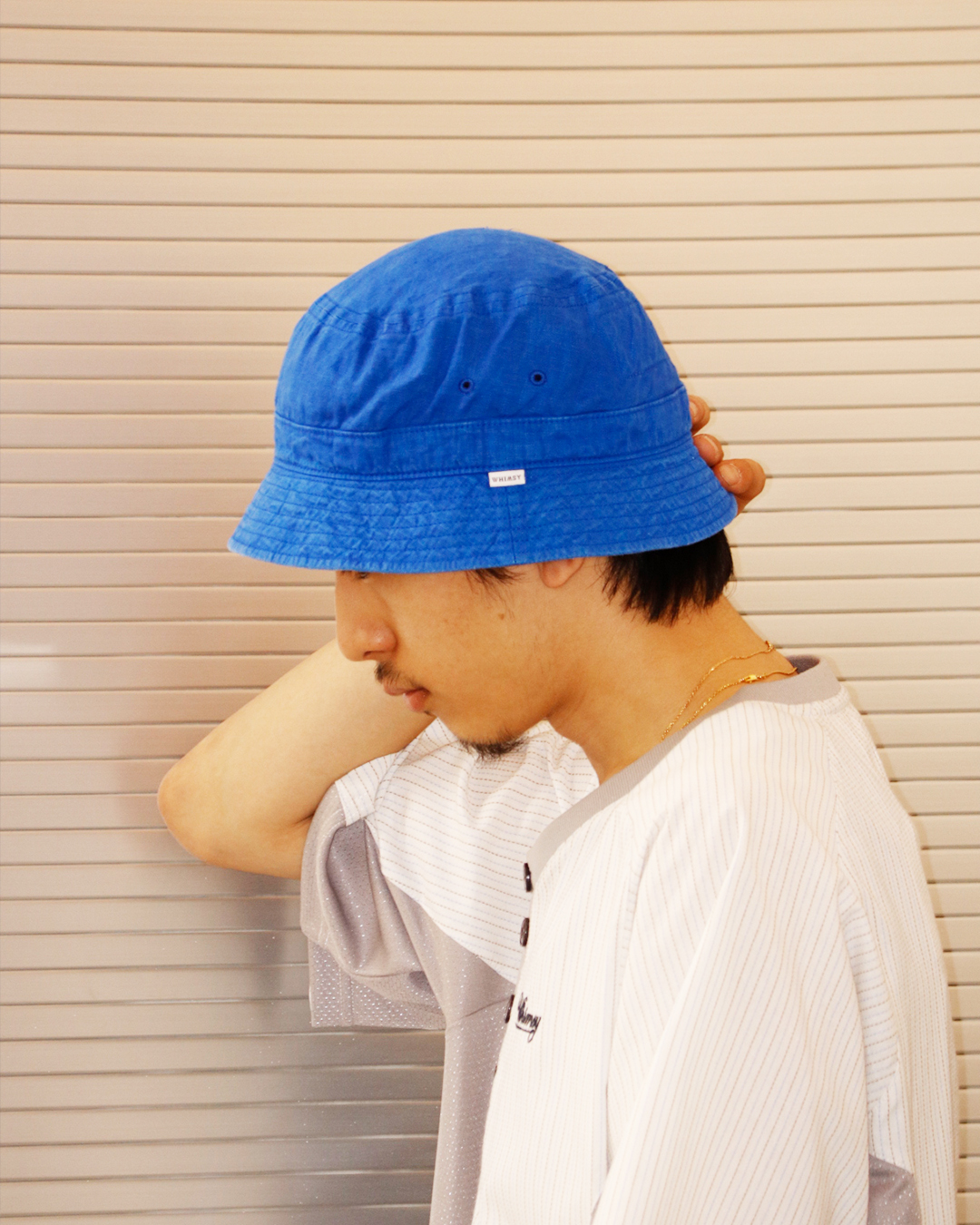 天然素材ヘンプを使用したバケットハットは製品染めを施したことにより、独特のシワ感が特徴的。今やWHIMSYの定番HAT。