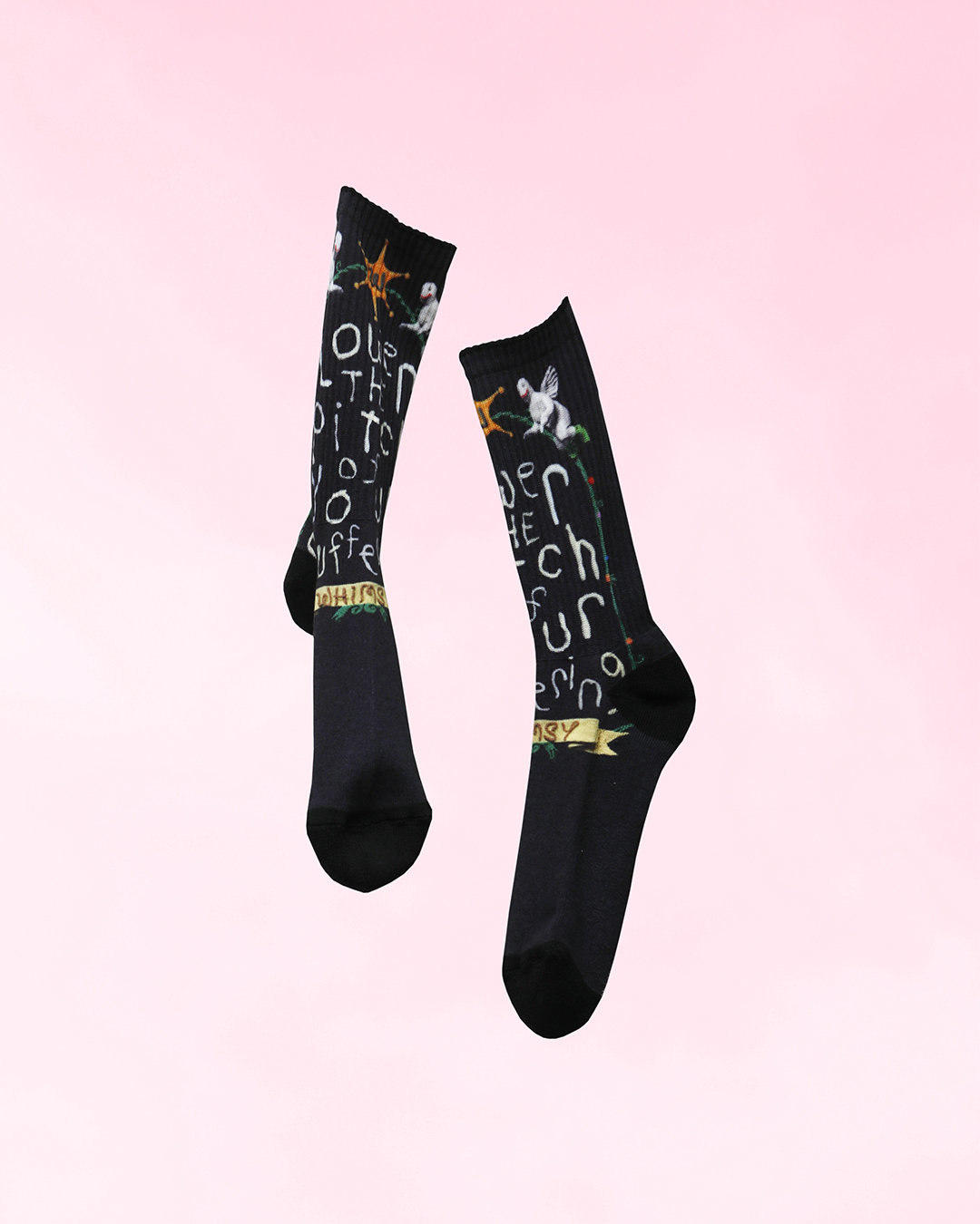 大阪在住のアーティスト”HARUTO TSUDA”によるデザインをインクジェットで大胆にプリントした1足。彼のメッセージを受け取って解読してみて欲しい。