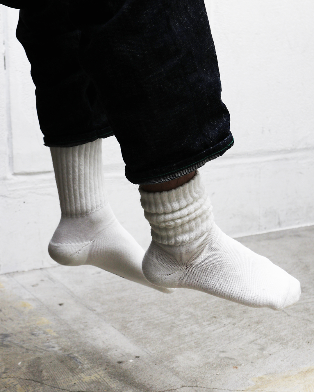 伸ばして履くとシンプルなソックスだが、あえてルーズに履けるよう設計されたソックス。